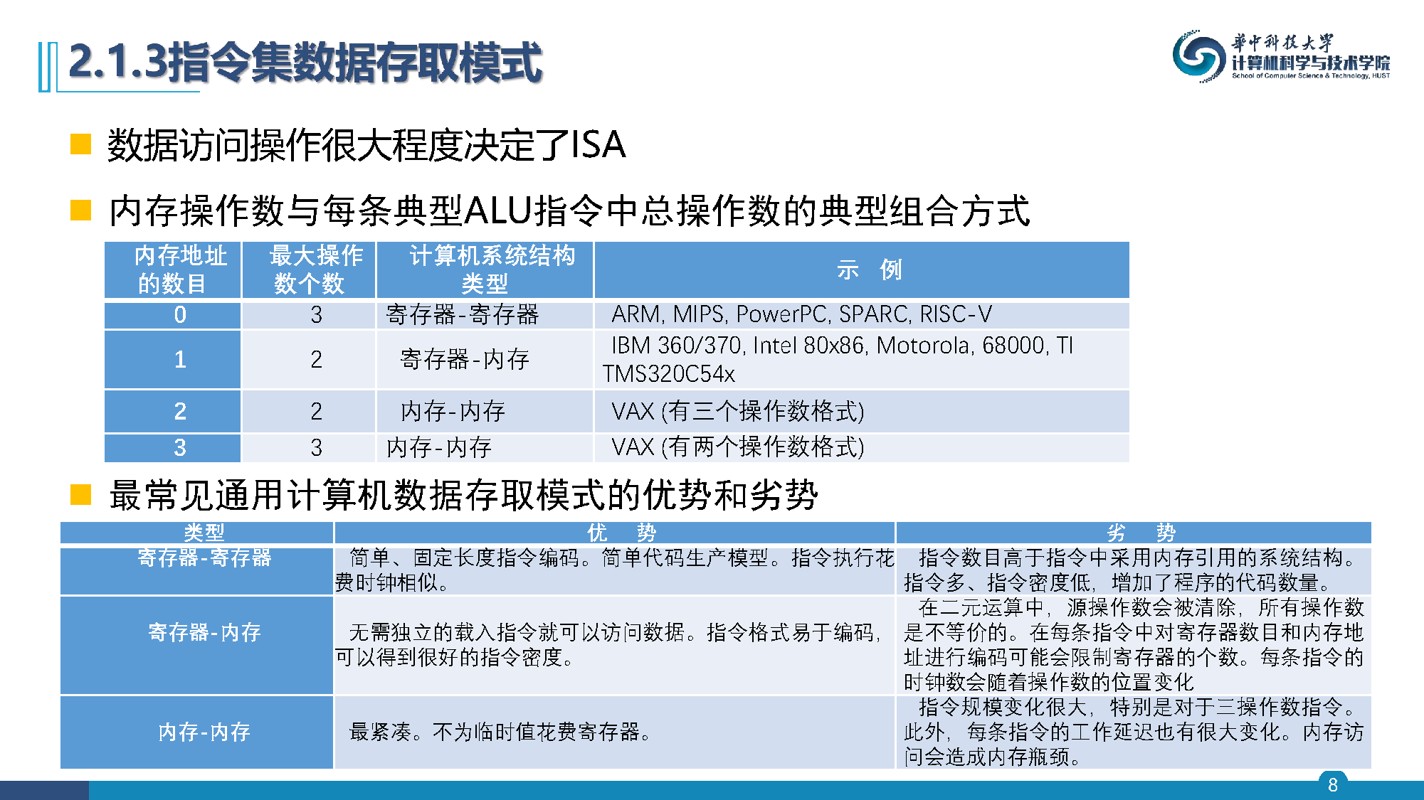 数据访问操作很大程度决定了ISA