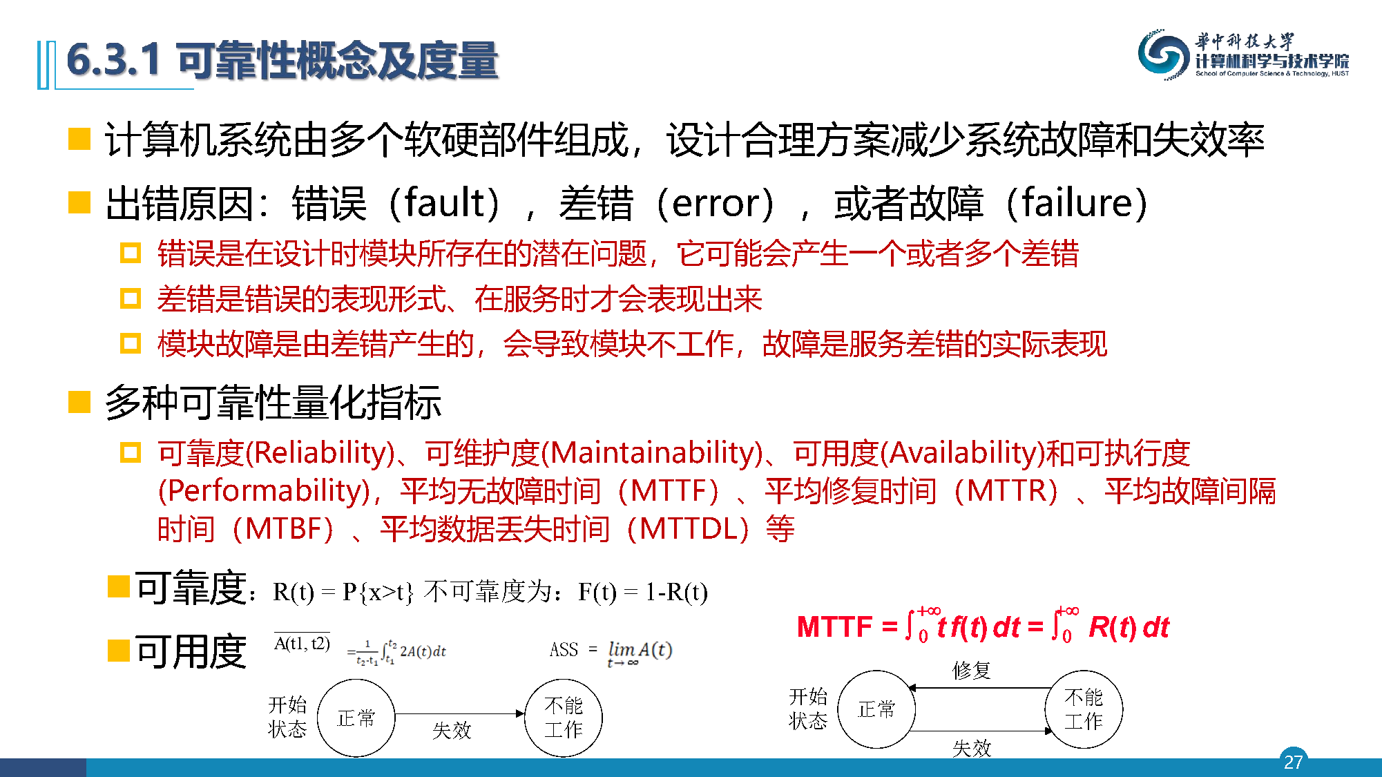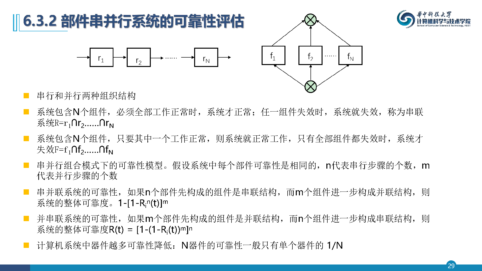 计算机系统中器件越多,可靠性越低:N 器件的可靠性一般只有单个器件的 1/N。