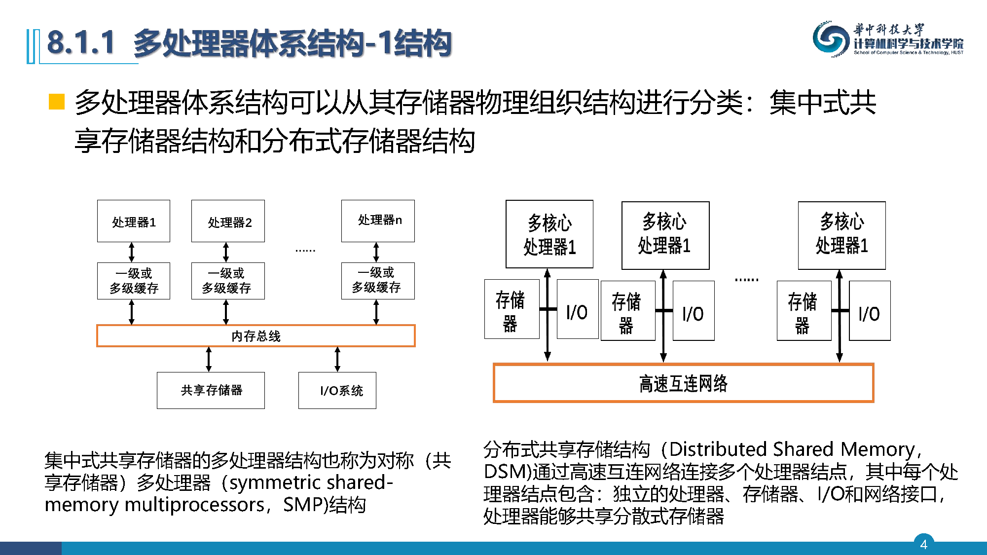 多处理器体系结构可以从其存储器物理组织结构进行分类: