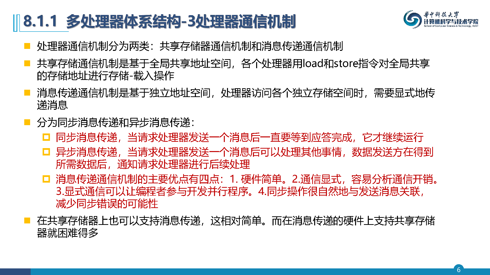 消息传递通信机制优点:硬件简单、通信显式容易分析、编程者可以参与开发并行程序、同步操作与发送消息关联减少同步错误