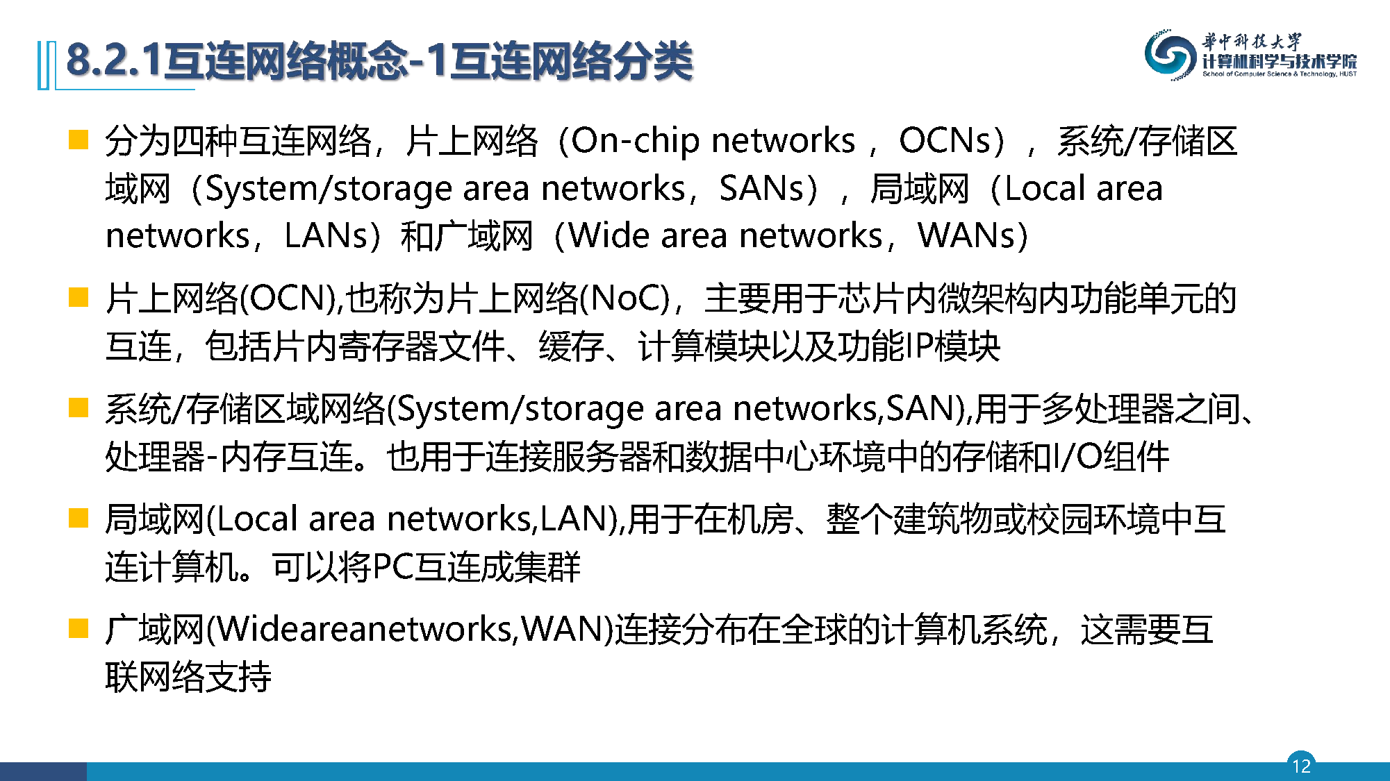 :主要用于芯片内微架构内功能单元的互连,包括片内寄存器文件、缓存、计算模块以及功能IP模块