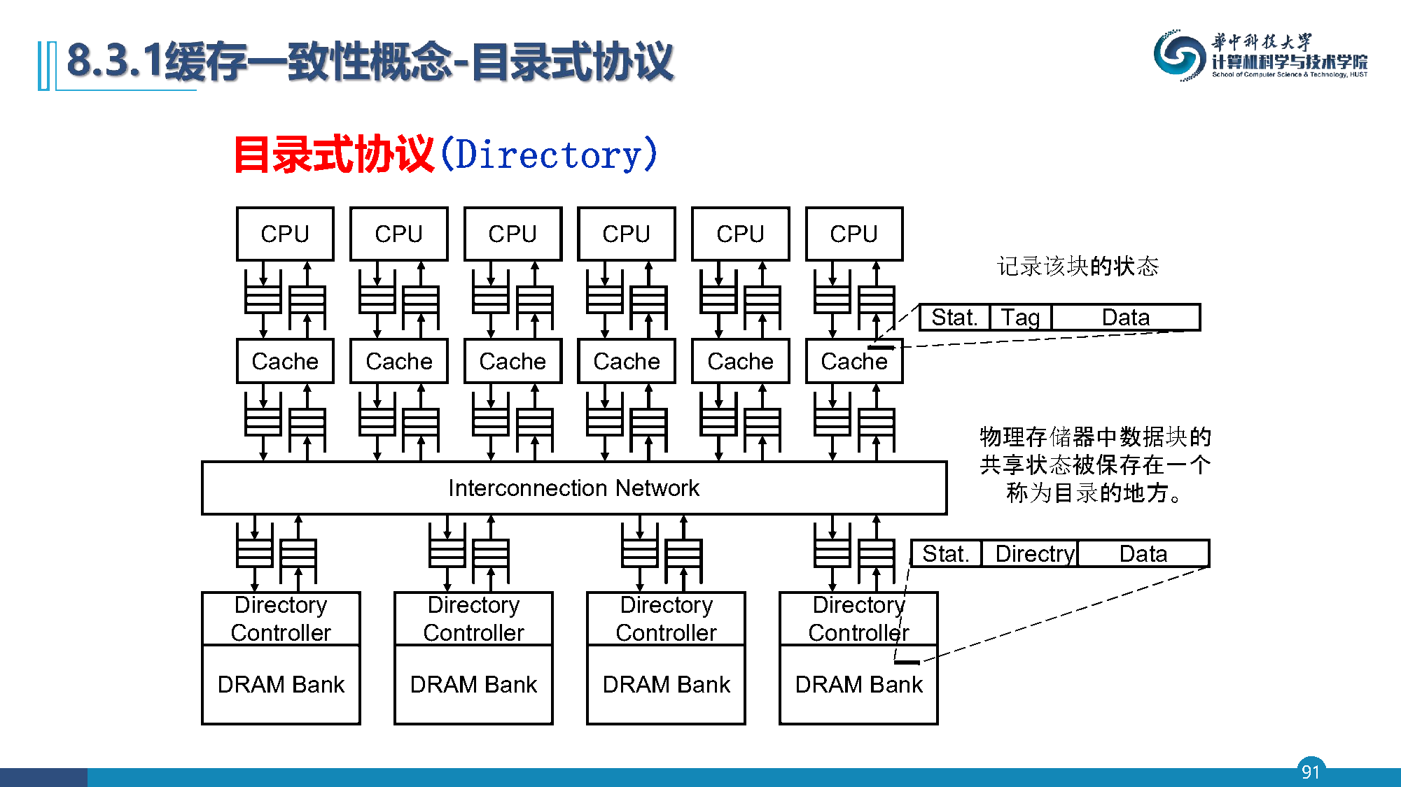 目录中保存了每个可缓存块的状态,包括哪些缓存(或缓存集合)拥有这个块的副本,它是否需要更新等
