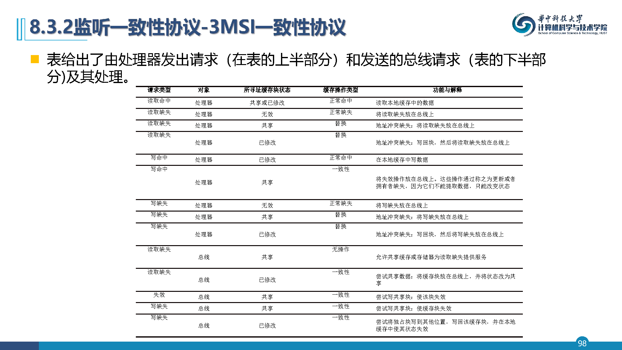 :在已修改状态下正常命中,在共享状态下产生一致性操作(失效)
