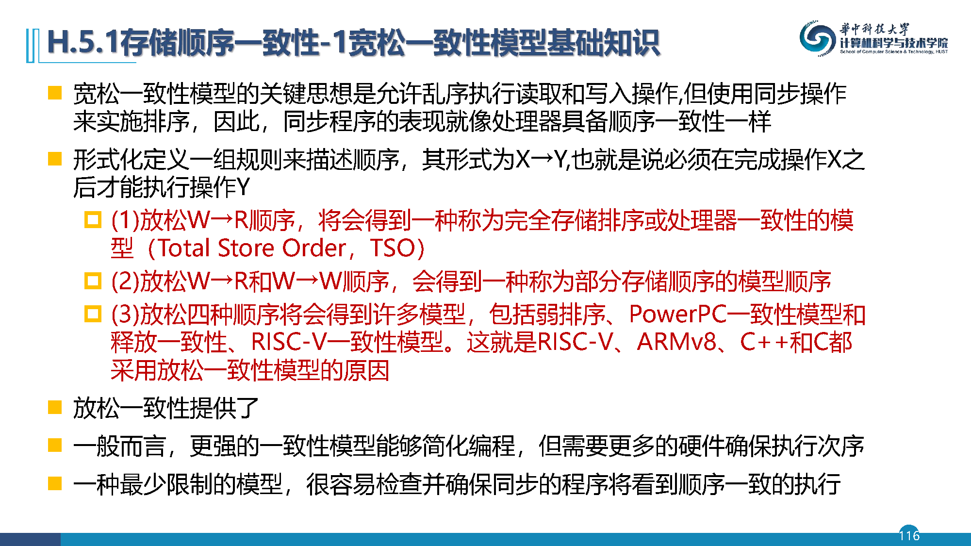 放松四种顺序:得到弱排序、PowerPC一致性模型、释放一致性、RISC-V一致性模型